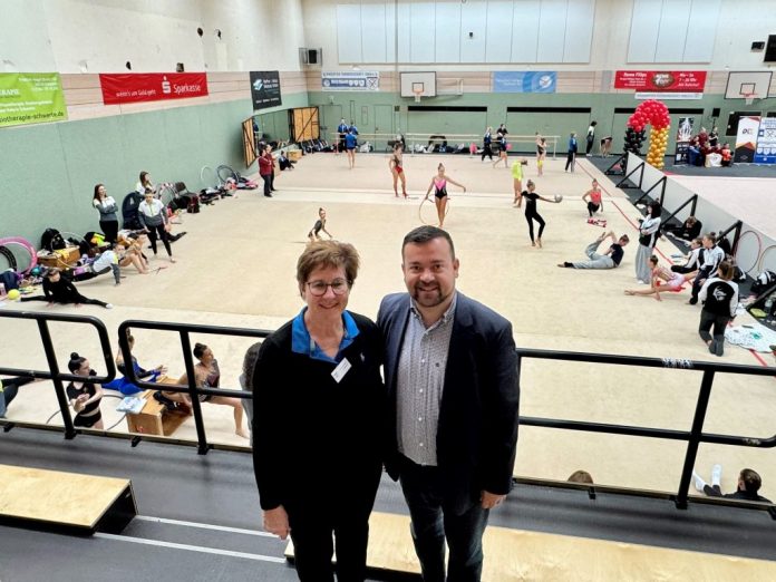 In Schwerte wurden jetzt die Bundesligawettkämpfe der Rhythmischen Sportgymnastik ausgetragen. Bürgermeister Dimitrios Axourgos besuchte die Veranstaltung und wurde von Doris Barthelmey, 1. Vorsitzende des Hauptvereins der Schwerter Turnerschaft, begrüßt.