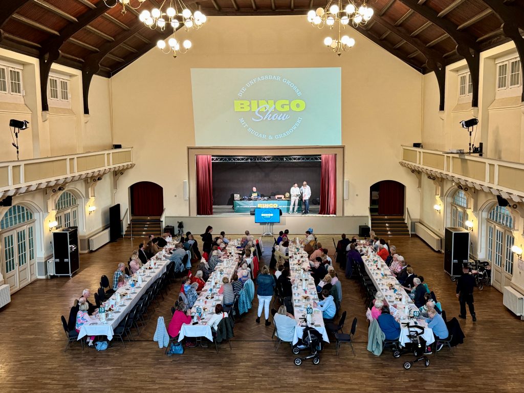Bei Kaffee und Kuchen wurde gemeinsam Bingo gespielt – moderiert vom Dortmunder Künstlerduo Sugar & Grabowski, das das klassische Spiel mit Musik und unterhaltsamen Einlagen kombinierte. Die Veranstaltung bot eine entspannte Atmosphäre, abwechslungsreiche Bingo-Runden und kleine humorvolle Preise.