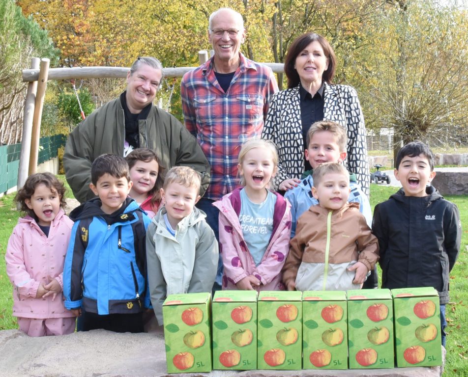 Udo Edelmeier ist wieder auf Apfelsaft-Tour. Am Mittwoch belieferte der Leiter des Projekts Geisecker Streuobstwiese die KiTa Wandhofen. Er zeigte sich sehr zufrieden mit dem Jahresergebnis.