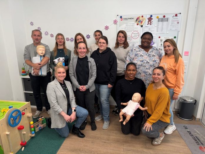 Im Schwerter Familienbüro fand jetzt ein praxisnaher Erste-Hilfe-am-Kind-Kurs statt, organisiert in Kooperation mit dem Mobilen Gesundheitskiosk des Kreises Unna. Für die fachkundige Leitung sorgte Jörg Werth von den Johannitern.