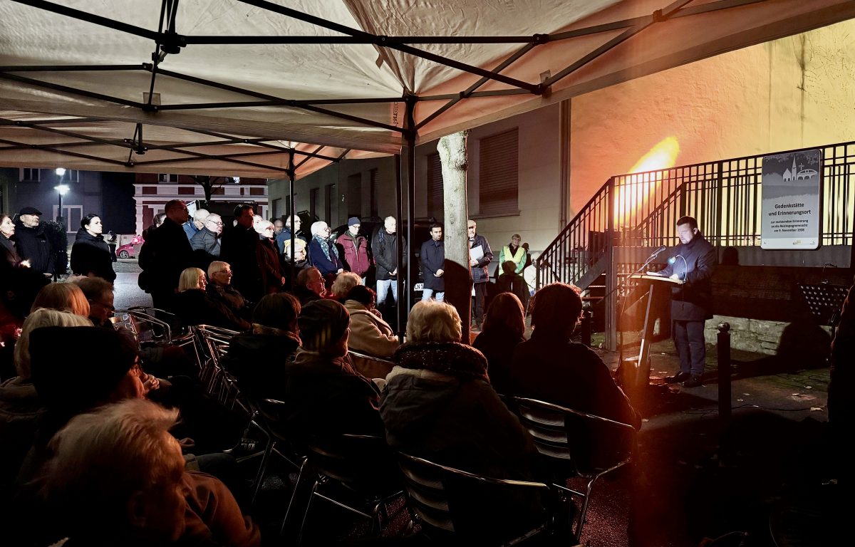 Viele Schwerter*innen bekannten sich am Sonntag zur Demokratie und setzten ein klares Zeichen gegen Antisemitismus und Rassismus. Anlass der Gedenkfeier in der Großen Marktstraße, am Platz der ehemaligen Synagoge, war die Reichspogromnacht vom 9. November 1938 – jener Tag, an dem in Deutschland Synagogen brannten und jüdische Mitbürger*innen verfolgt, verschleppt und diskriminiert wurden.