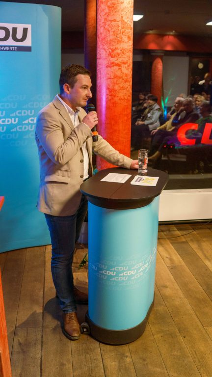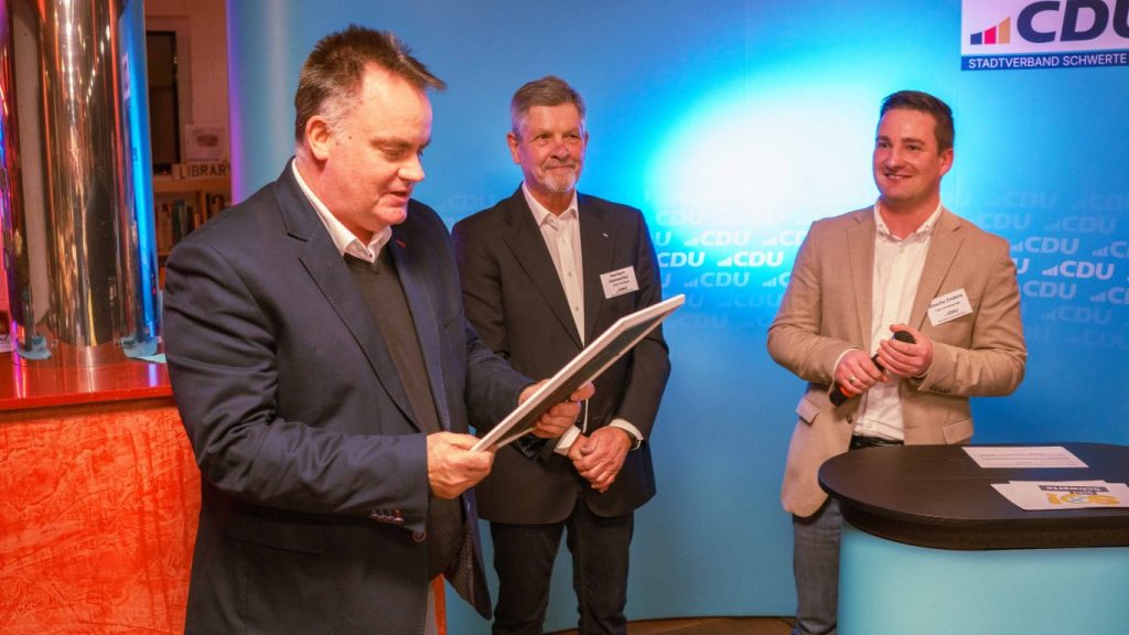 Ein Höhepunkt des Abends war die kämpferische Rede von CDU-Parteichef Sascha Enders. Mit klaren Worten zeichnete er die politischen Ziele der Partei für die kommenden Monate und Jahre. Anschließend stellte Bürgermeisterkandidat Waldemar Leinweber seine Visionen für die Stadt Schwerte vor.