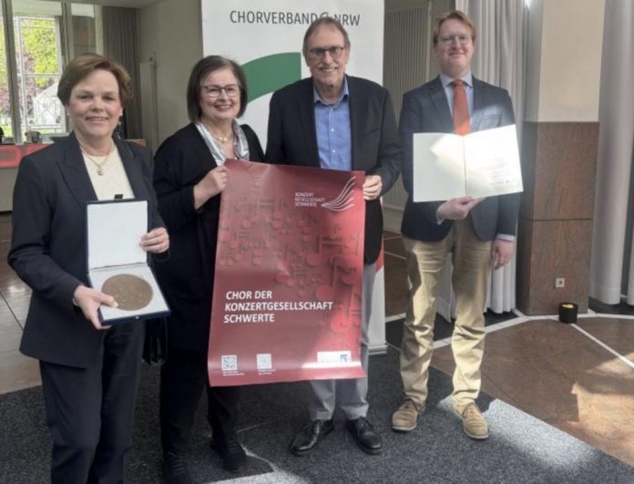 Bei einem Festakt im Bürgersaal des Dortmunder Rathauses wurden am Sonntag die diesjährigen Verleihungen der Zelter- und Pro-Musica-Plaketten für Chöre bzw. Instrumentalgruppen vorgenommen. Als einziger Chor aus NRW erhielt der Chor der Konzertgesellschaft die wertvolle Auszeichnung aus den Händen von Kultur- und Wissenschaftsministerin Ina Brandes.