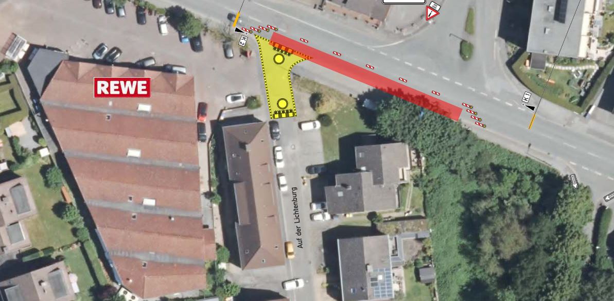 Straßenbau- und Asphaltarbeiten führen dazu, dass in der Zeit vom 28. Juli 2025 (Montag) bis zum 31. Juli 2025 (Donnerstag) die Einfahrt zur Straße „Auf der Lichtenburg“ von der Letmather Straße aus nicht möglich ist. Gleichzeitig kommt es zu einer halbseitigen Sperrung der Letmather Straße. Der Verkehr wird mit einer Baustellenampel gesteuert. Anwohner der Lichtenburg erreichen ihre Häuser über die Straße „Auf dem Hilf“ und Kirchhofsweg. Der Parkplatz von Rewe kann über die Ausfahrt erreicht werden. Die Maßnahme ist mit Rewe abgesprochen.