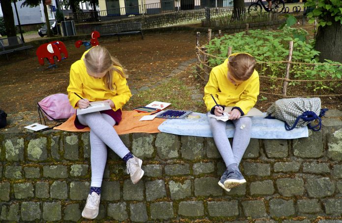 Bei einem kleinen Streifzug durch die Altstadt entdeckten sie dann aber mit offenen Augen und mithilfe eines „Suchers“ aus Pappe, der durch ein Loch den Blick fokussiert, neben den alten Stadtdenkmälern der St. Viktor-Kirche und dem Alten Rathaus auch ihre ganz eigenen Motive. Martina Schulte beschreibt begeistert: „Kinder fallen andere und sehr spannende Dinge ins Auge, die wir Erwachsenen gar nicht sehen“. So haben die Kinder ihre Stadt einmal ganz intensiv wahrgenommen und mit Stift und Kreide auf ihren Post-Karten festgehalten. Bei dem Elan, mit dem die kleinen Künstler zu Werke gingen ist eines sicher: Die kreativen Grüße aus Schwerte werden den Empfänger-innen – ob Opa oder Tante – große Freude bereiten.