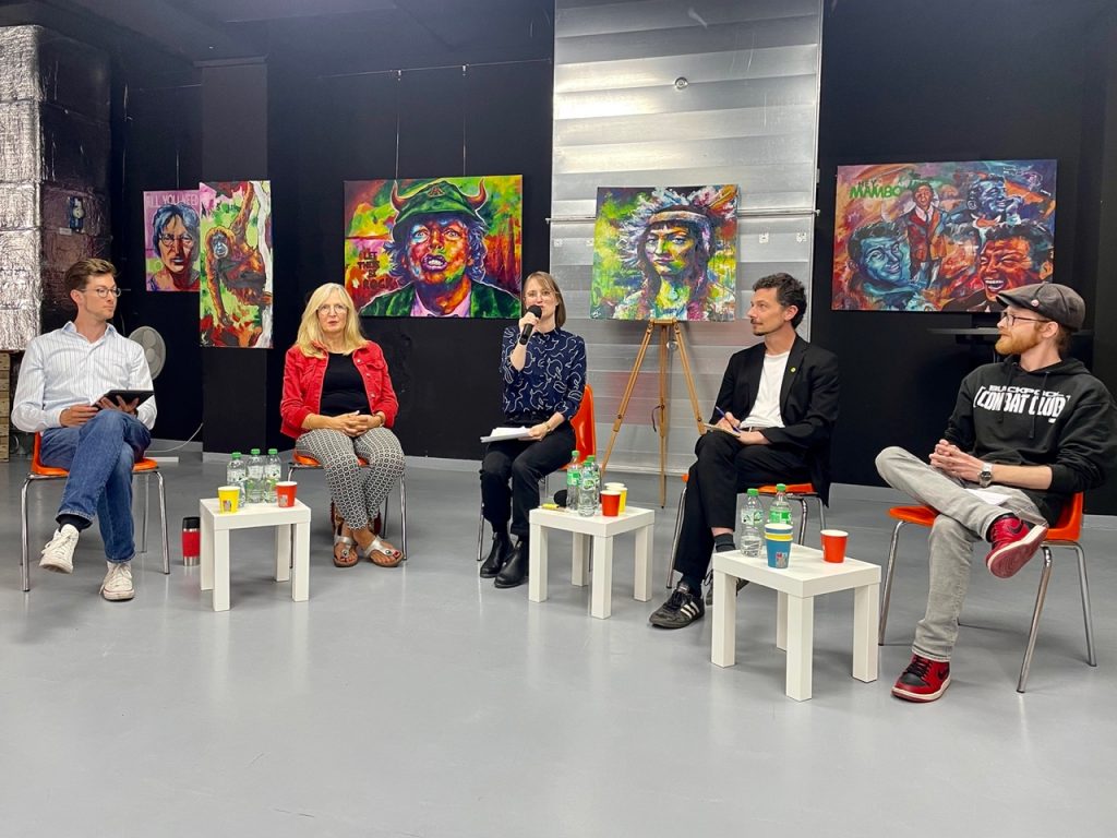 Vor der Kunst-Kulisse der KIS-KulTour-Ausstellung in dem Raum The Stage der isg-schwerte entspann sich eine rege und interessante Diskussion, professionell moderiert von Astrid Hoffmann aus dem Kernteam der Kulturinitiative.