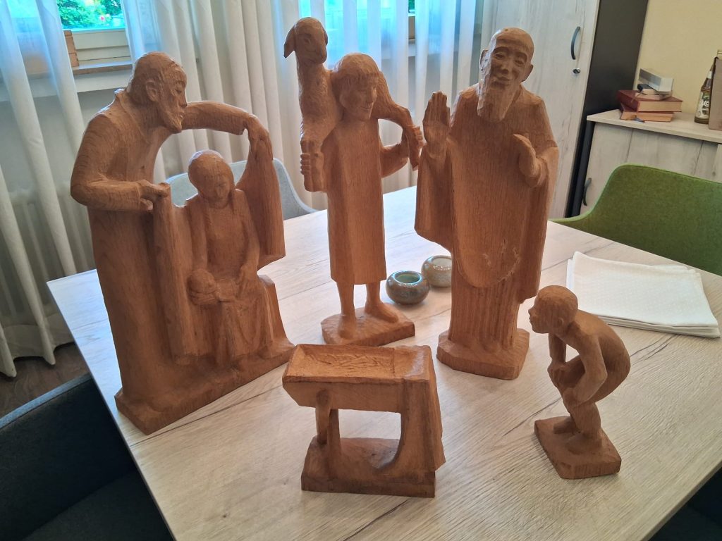 Weiße Flecken an der Wand und ein leerer Tresor erzählen davon, dass etwas im Johanneshaus fehlt. Tatsächlich sind einige Kunstwerke der Evangelischen Kirchengemeinde Schwerte auf Reisen gegangen. Kaum einer weiß, dass das Johanneshaus am Alten Dortmunder Weg besonders viele Exponate des namhaften Künstlers und Bildhauers Karl Hemmeter beherbergt. 1904 wurde er in Weißenburg/Bayern geboren. Nach seiner Lehre im elterlichen Betrieb besuchte der die Nürnberger Kunstgewerbeschule. Von da an ging sein künstlerischer Weg steil nach oben. Am bekanntesten mag wohl die von ihm geschaffene Christusfigur in der Kaiser-Wilhelm-Gedächtniskirche in Berlin sein. Jetzt bereitet die Stadt Weißenburg ihm zu Ehren eine Ausstellung vor und hat vor diesem Hintergrund die Evangelische Kirchengemeinde Schwerte angesprochen. Auf Reisen sind nun die vier Reliefs „Barmherzigkeit“, „Lob“, „Liebe“ und „Gemeinschaft“ gegangen sowie die von Hemmeter geschnitzte Weihnachtskrippe. Eine kleine Sensation stellte sich mit dem Kreuz ein, das der frühere Pfarrer auf der Schwerterheide – Walter Rattelsberg – vor seinem Wegzug der Kirchengemeinde überlassen hat. Denn das romanisch gehaltene Siegeskreuz war bis dato nirgendwo dokumentiert oder katalogisiert. Der Stadtarchivar der Stadt Weißenburg war ganz begeistert, als er dieses unbekannte Kunstwerk in seinen Händen hielt. Die Kunstwerke werden nun als Hommage an den Künstler vom 11. Juli 2025 bis zum 10. August 2025 in der KunstSchranne der Öffentlichkeit vorgestellt.