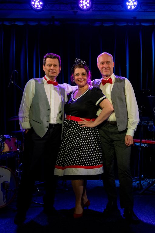 Erleben Sie die drei Künstler wieder mit Petticoat, Fliege und einem bunten Strauß „Gute-Laune-Musik“, eigens arrangiert für Gesang, E-Piano und Schlagzeug!