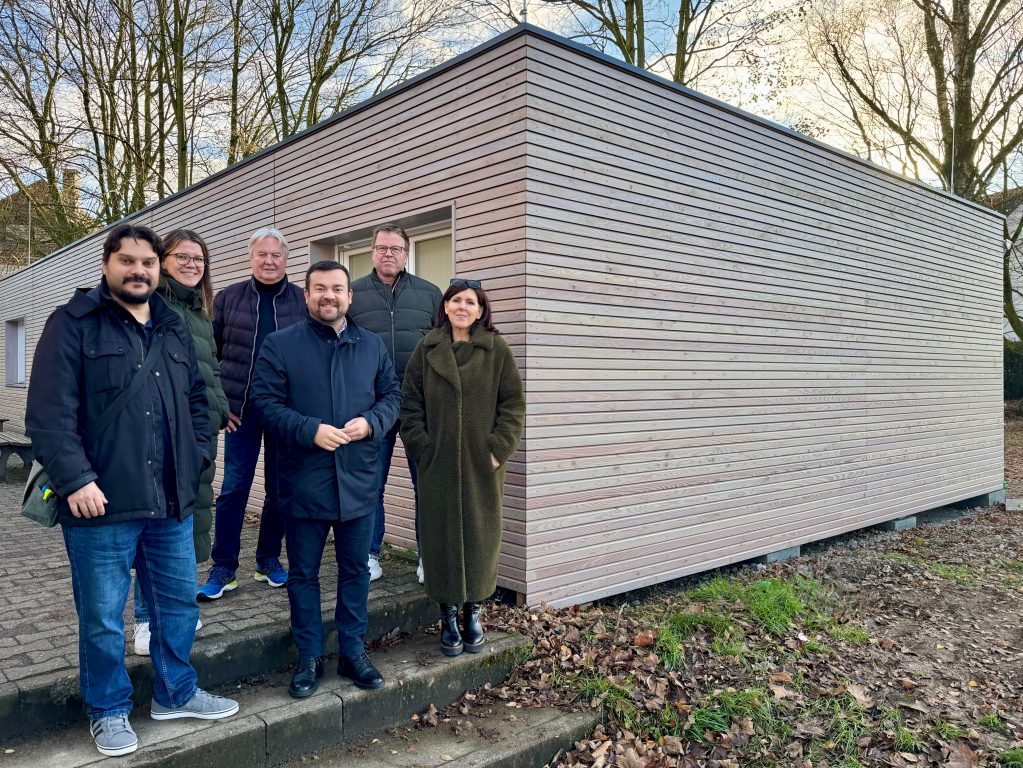 Bürgermeister Dimitrios Axourgos und Gabriele Stange, Amtsleiterin für den Sportbereich, verschafften sich gemeinsam mit Katharina Flassig und Sefer Capkin vom Technischen Gebäudemanagement sowie Ulrich Faltin und Thomas Redel vom Geisecker SV einen persönlichen Eindruck von der Umsetzung. Alle Beteiligten zeigten sich erfreut über die deutliche Verbesserung der Bedingungen für die Sportler*innen.