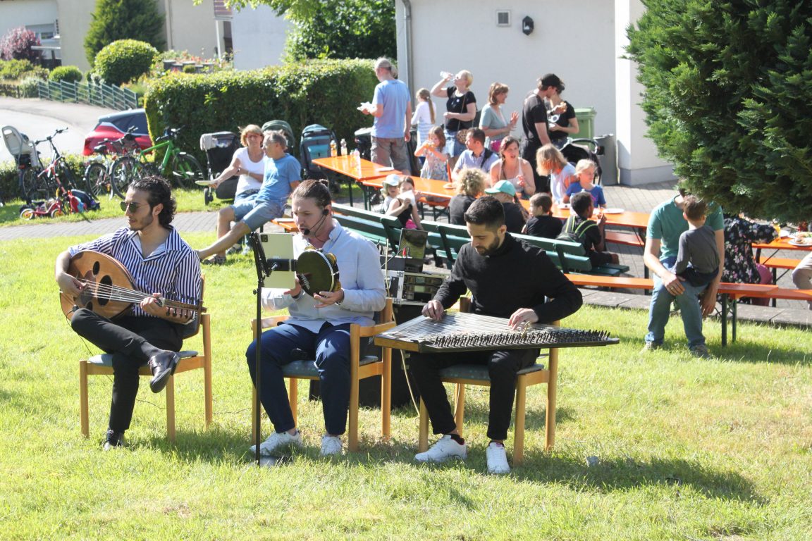 Auf der Wiese sorgte arabische Livemusik für eine entspannte Atmosphäre, während Rheinhild Hoffmann und ihr Mann zum fröhlichen Mitsingen einluden. Für das leibliche Wohl war ebenfalls bestens gesorgt: Am Nachmittag lockte ein reichhaltiges Kuchenbuffet, und zum Abend hin wurde gegrillt.