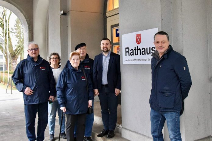 Um die Tradition zu bewahren und das Rathaus erneut zu schmücken, hat der Hanseverein nun ein neues Schild übergeben – diesmal aus robustem Kunststoff. Bürgermeister Dimitrios Axourgos nahm das Geschenk dankend entgegen und lobte das Engagement des Vereins: „Es ist schön zu sehen, wie engagierte Vereine wie der Hanseverein einen Beitrag zur Verschönerung unserer Stadt leisten“, betonte er bei der Übergabe.