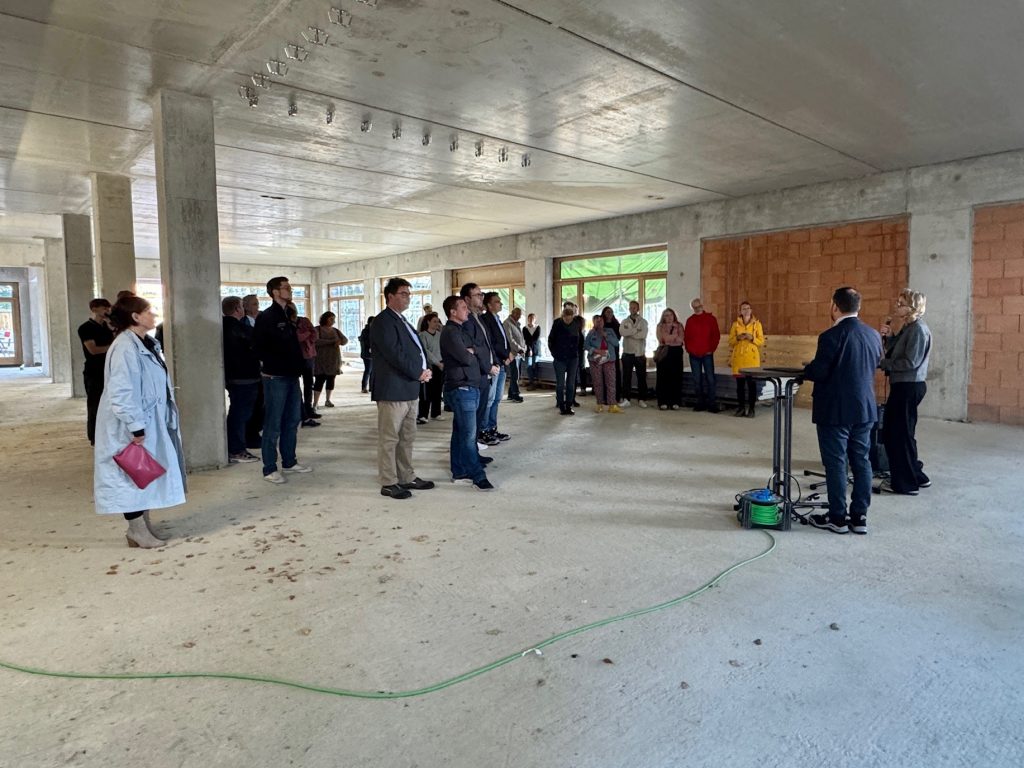 Im Gänsewinkel entsteht ein neues Schulgebäude samt Aula für die Gesamtschule Gänsewinkel. Nur knapp zehn Monate nach dem Spatenstich im November 2024 feierten Bürgermeister Dimitrios Axourgos, Schulleiterin Eva Graß-Marx und zahlreiche Gäste aus Politik, Verwaltung, Schule und Baufirmen das Rohbaufest.
