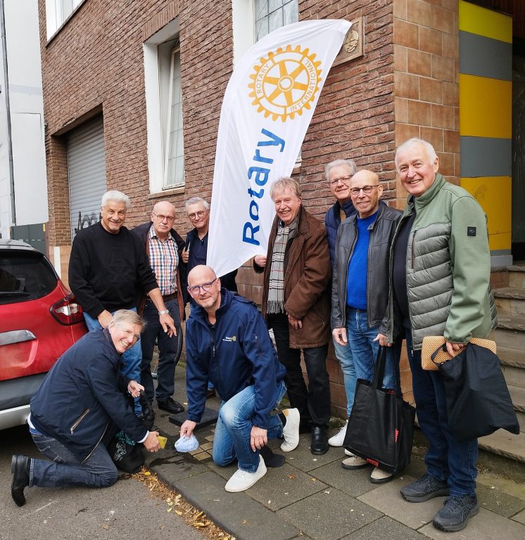 Diese Aufmerksamkeit aufrecht zu erhalten, hat sich der Rotary Club Schwerte zur Aufgabe gemacht. Die Wahrnehmung der Mahnsteine im Pflaster würde genauso verblassen wie die Namen auf diesen. Die Messingplatten sind das ganze Jahr über der Witterung ausgesetzt. Deshalb nahmen die Mitglieder des Rotary Clubs mit viel Hingabe und Respekt die Reinigung der Stolpersteine in Angriff. Am 9. November, dem Gedenktag an die Pogromnacht 1938, sollen die Stolpersteine wieder hell als ein Zeichen des Gedenkens und der Solidarität leuchten. Insgesamt machten sich am Dienstag, dem 4. November, 15 Rotarierinnen und Rotarier, aufgeteilt in drei Gruppen, auf den Weg zu den über das Stadtgebiet verstreuten Steinen, um sie erneut zum Glänzen zu bringen.