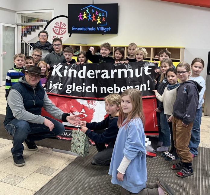 Kinderarmut überreichen. Der Betrag stammt aus der Waffelaktion, die