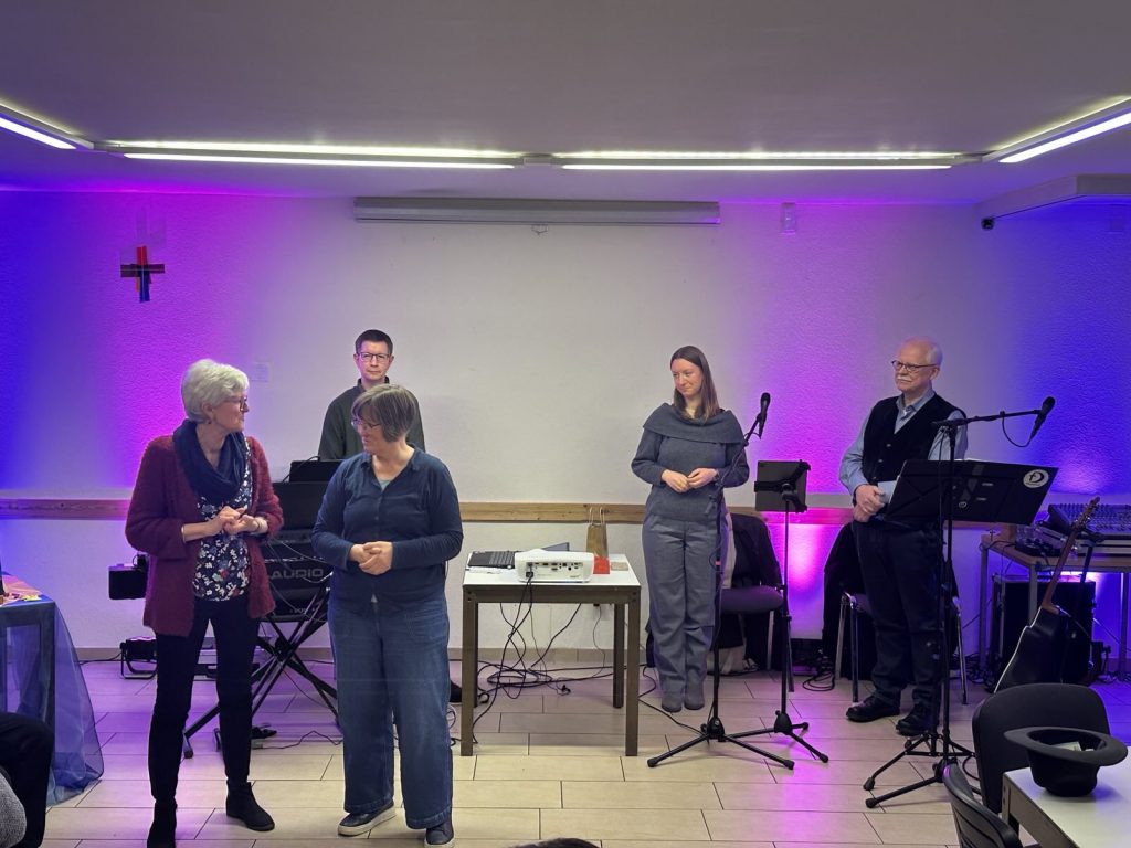 Im Namen des Pastoralteams bedankte sich Ulrike Nagel bei Mariele Rupieper und Werner Biedermann (er ließ aus seiner Reha in Bad Sassendorf grüßen) für das spannende Schwerter-Forum–Jahr 2025, das jetzt in die Winterpause geht. Mit großer Neugier dürfen sich alle auf interessante Abende zum gewohnten Wochentag am neuen Ort mit spannenden Themen freuen! Start ist am Donnerstag, 12. März 2026 im Bürgersaal unten im Rathaus. Ein herzlicher Dank ging auch an die GruppePADUANA, die viel Applaus für ihre musikalische Gestaltung erhielt.