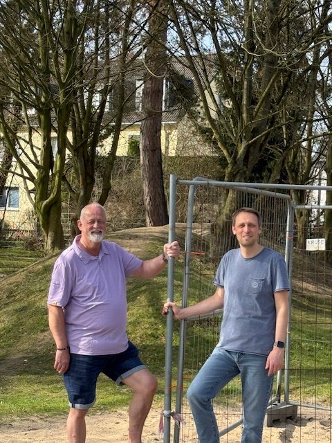 So wollen Ratsmitglied Patrick Neumann und Uwe Görke-Gott auch nach dem Wahlsieg im Wahlkreis bzw. Stadtteil Holzen präsent bleiben.