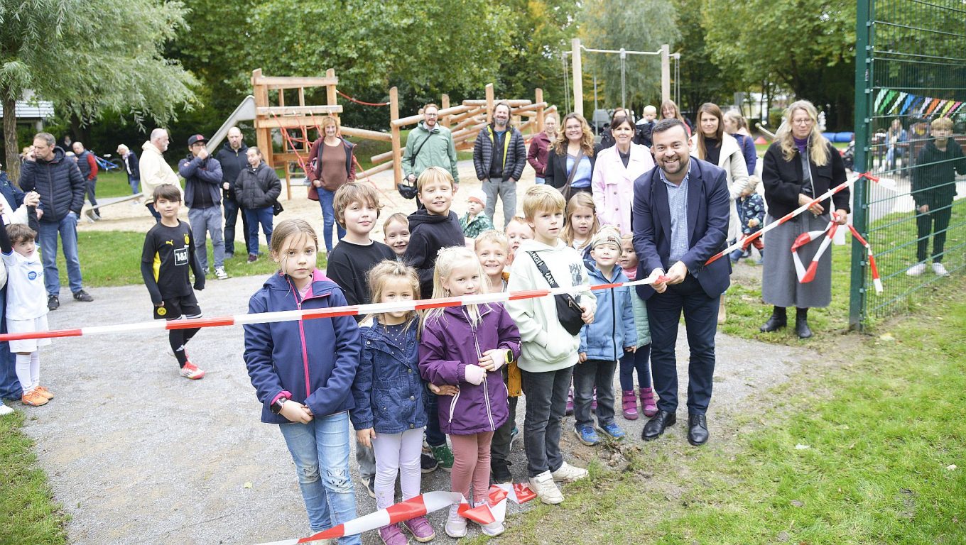 Im Mittelpunkt der Eröffnung stand der Bolzplatz. Als das Stadtoberhaupt das Band zum Bolzplatz durchschnitt, gab es für die Kinder kein Halten mehr. Sie stürmten auf den Naturrasen und belagerten die beiden Tore. „Ich freue mich, dass der Spiel- und Bolzplatz so gut angenommen wird“, sagte der Bürgermeister. „Das zeigt mir, dass wir mit unseren Maßnahmen, Spielplätze im gesamten Stadtgebiet zu überarbeiten und höhere Aufenthaltsqualitäten zu schaffen, auf dem richtigen Weg sind“.