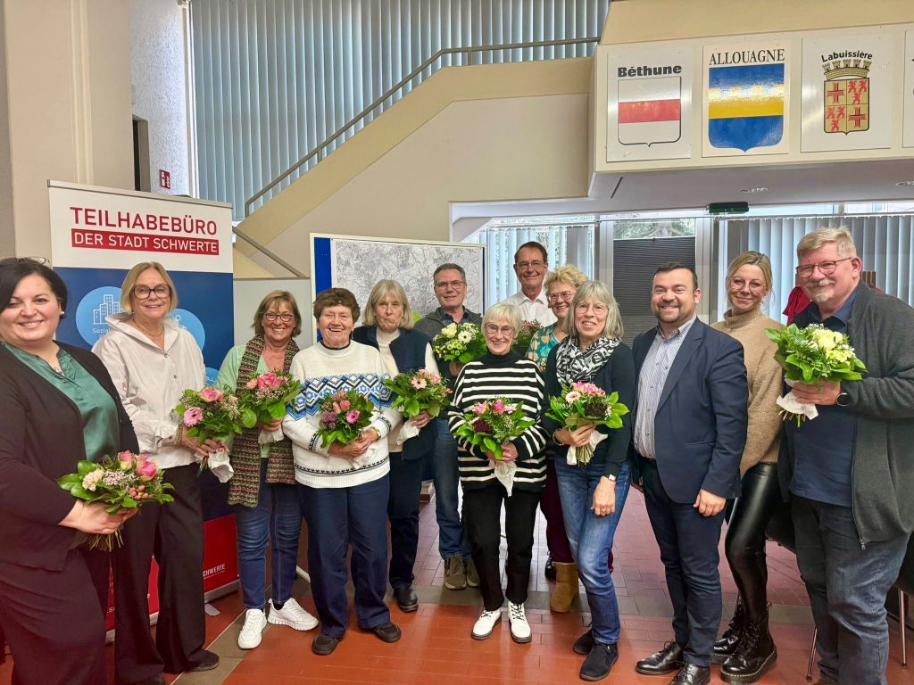 Die Stadt Schwerte und das Freiwilligenzentrum „Die Börse“ haben engagierte Ehrenamtliche der Schwerter Begegnungsstätten in den Bürgersaal eingeladen, um ihnen Dank und Anerkennung für ihren Einsatz auszusprechen.