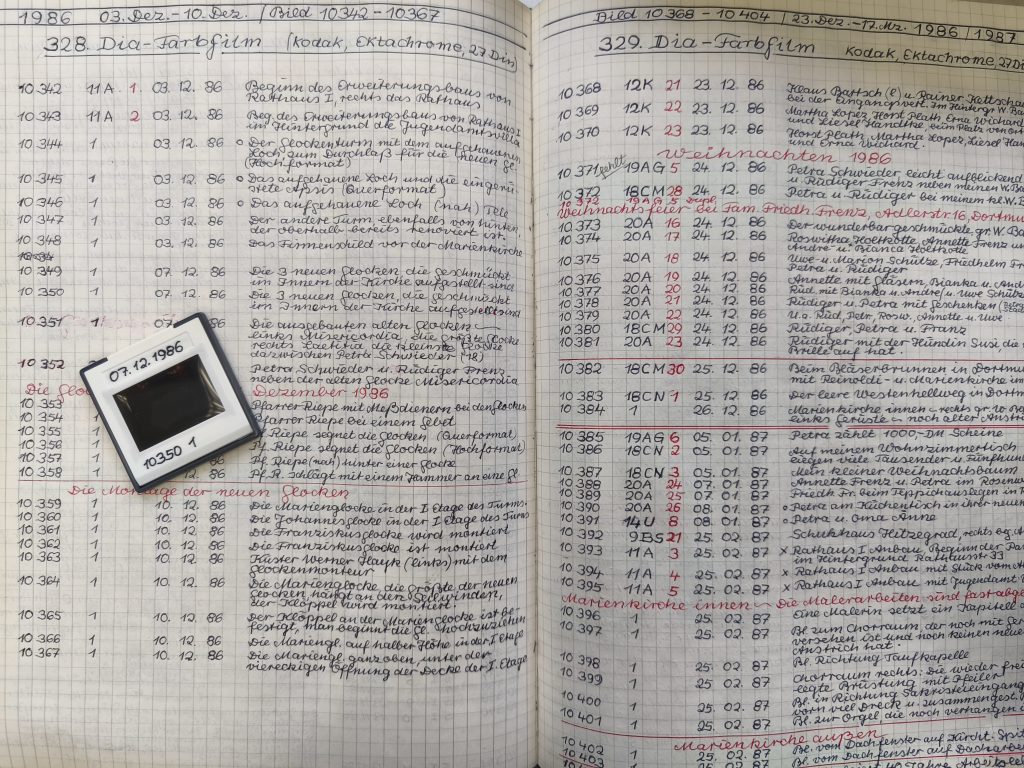 Schwerte – Im Stadtarchiv Schwerte schreitet das Projekt zur Sicherung und digitalen Erschließung der Dia-Sammlung des bekannten Schwerter Postboten und Hobbyfotografen Franz Schwieder erfolgreich voran. Schwieder dokumentierte mit seiner Kamera von 1959 bis 1996 das Gesicht und die Veränderungen seiner Heimatstadt Schwerte. Nach einer intensiven Phase der Sichtung und Auswahl konnte nun die eigentliche Digitalisierung des umfangreichen Diabestandes beginnen.
