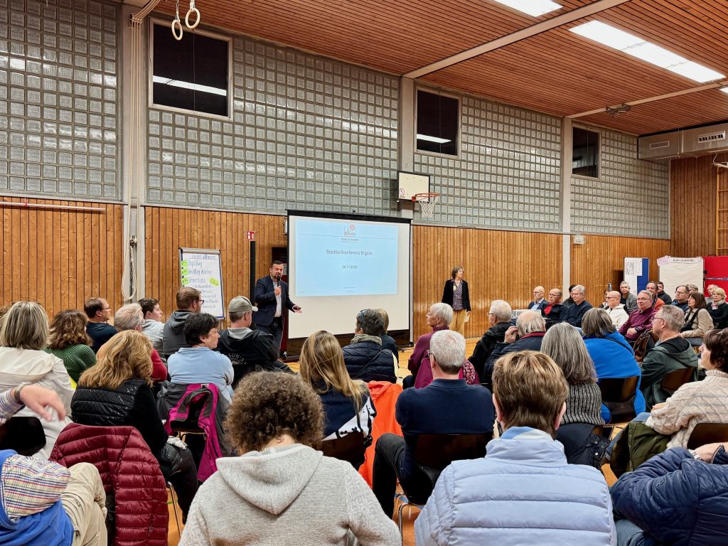 Mit rund 140 Teilnehmenden fand die inzwischen fünfte Stadtteilkonferenz erstmals in Ergste statt. In der Neuen Ergster Mitte nutzten zahlreiche Bürger*innen die Gelegenheit, sich zu informieren, Fragen zu stellen und aktiv mitzudiskutieren.