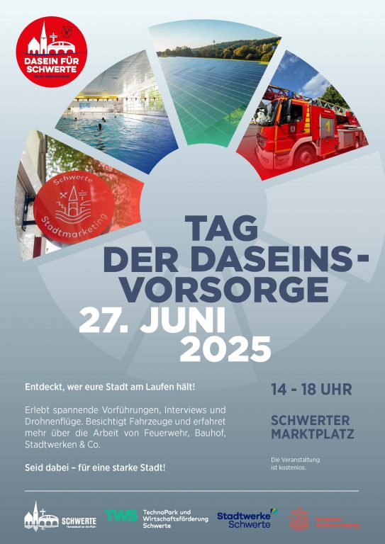 Am Freitag, den 27. Juni 2025, verwandelt sich der Marktplatz in Schwerte von 14 bis 18 Uhr in einen lebendigen Erlebnisort rund um das Thema Daseinsvorsorge. Unter dem Motto „Dasein für Schwerte“ zeigen zahlreiche lokale Akteure, was sie täglich leisten, um das Leben in Schwerte zuverlässig und lebenswert zu gestalten – anschaulich, interaktiv und für alle Altersgruppen.