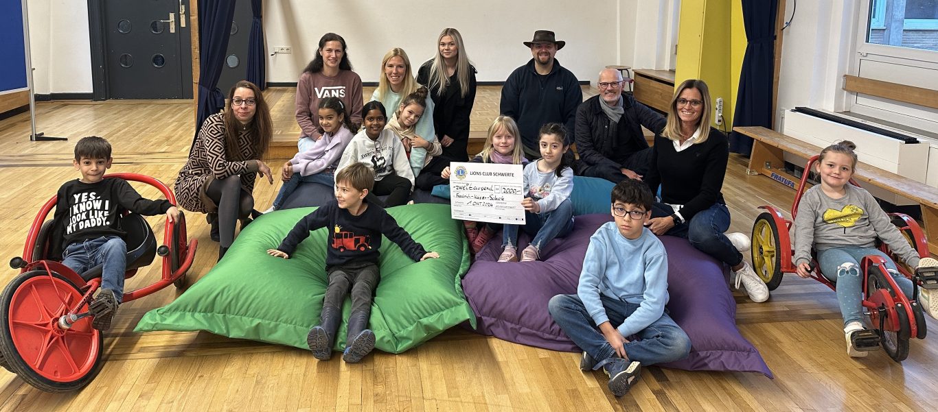 Finanziert wurde durch eine einmalige Spende des Lions Club Schwerte insg. 15 Sitzsäcke,