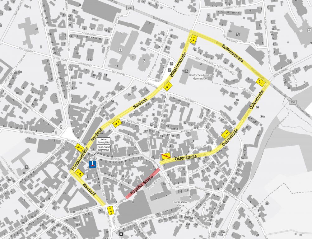 Die Hagener Straße wird im Bereich vor dem City Center in der Zeit vom 2. März bis 30. April voll gesperrt.