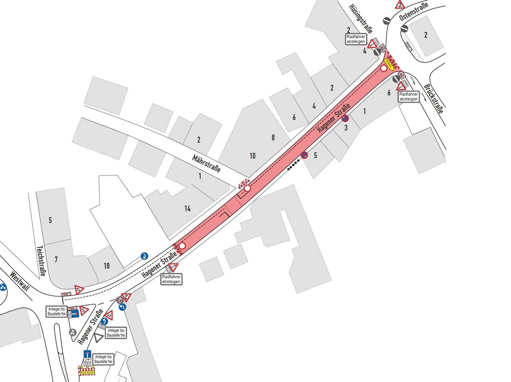 Die Hagener Straße wird im Bereich vor dem City Center in der Zeit vom 2. März bis 30. April voll gesperrt.