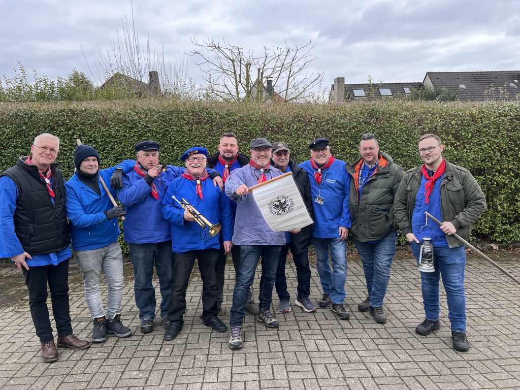 Bereits eine Woche zuvor, am 21.02.25, treffen sich die Ausrufer, um die frohe Kunde auf das bevorstehende Fest zu verbreiten. Mit Fanfahren, Trommeln und Schriftrolle machen sie sich auf den Weg durch die Dorfgemeinschaft.