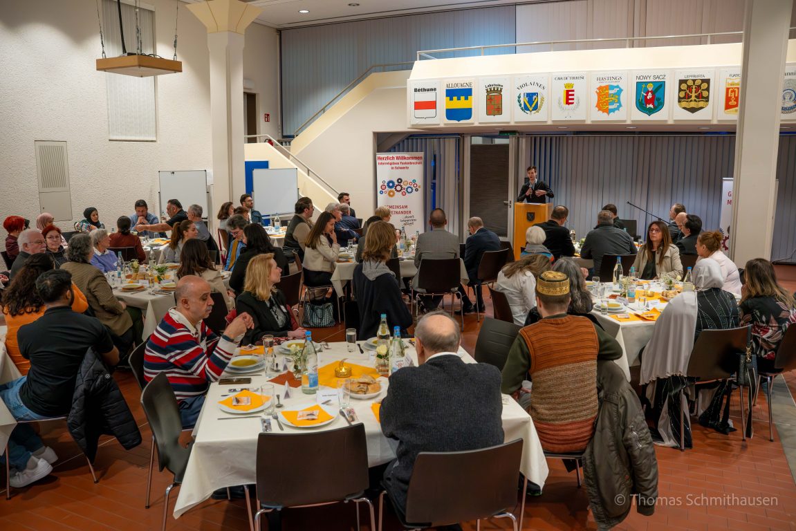 Es ist diese ganz besondere Mischung aus Weihrauch-Atmosphäre und kommunalpolitischem Klassentreffen: Das interreligiöse Fastenbrechen im Bürgersaal des Rathauses I ist mittlerweile so etwas wie die „heilige Kuh“ der Schwerter Integrationsarbeit. Am Freitagabend war es wieder so weit. Die Einladung versprach Vielfalt, Toleranz und Begegnung. Und während die kulinarische Vielfalt auf den Tischen tatsächlich Weltformat hatte, wirkte das Programm auf der Bühne zeitweise wie eine – nun ja – etwas einseitige Angelegenheit.